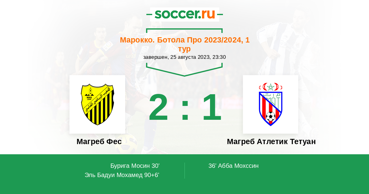Марокко. Ботола Про 20.09.2024 Магреб Атлетик Тетуан Логотип футбольный клуб Магреб Атлетик Тетуан 1:1 Логотип футбольный клуб Магреб Фес Магреб Фес