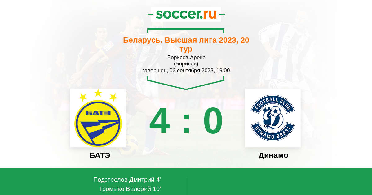 Беларусь. Высшая лига 26.09.2020 БАТЭ Логотип футбольный клуб БАТЭ (Борисов) 2:4 Логотип футбольный клуб Динамо (Брест) Динамо