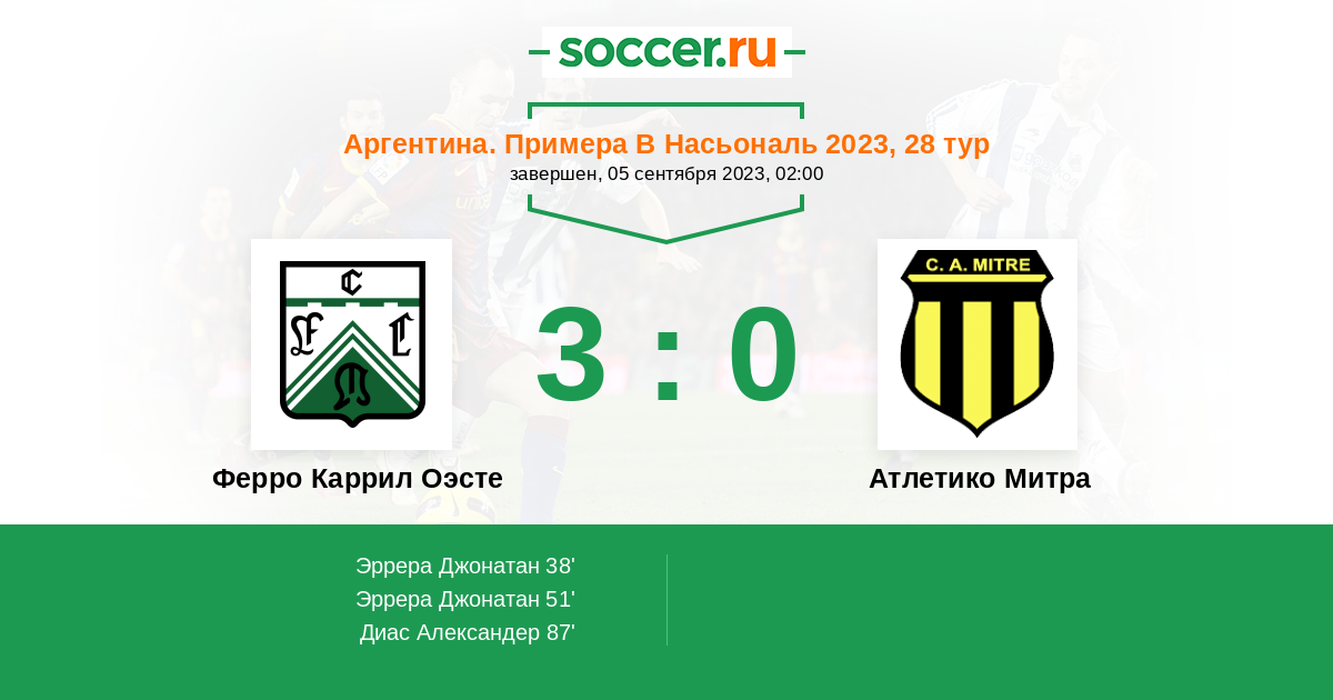 Ферро Каррил Оэсте 6:1 2:0 4:1