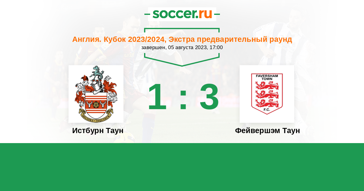 Англия. Первый дивизион истмийской лиги: Север 18.08.2012 Фейвершэм Таун Логотип футбольный клуб Фейвершэм Таун 3:3 Логотип футбольный клуб Истбурн Таун Истбурн Таун