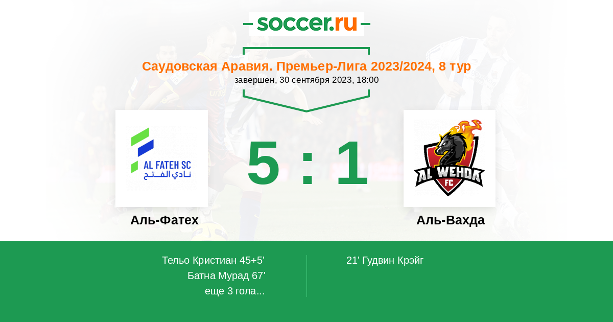 Саудовская Аравия. Премьер-Лига 30.03.2024 Аль-Вахда Логотип футбольный клуб Аль-Вахда (Мекка) 2:3 Логотип футбольный клуб Аль-Фатех (Эль-Хаса) Аль-Фатех