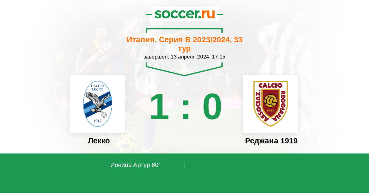 Лекко 1:1 0:0 1:1