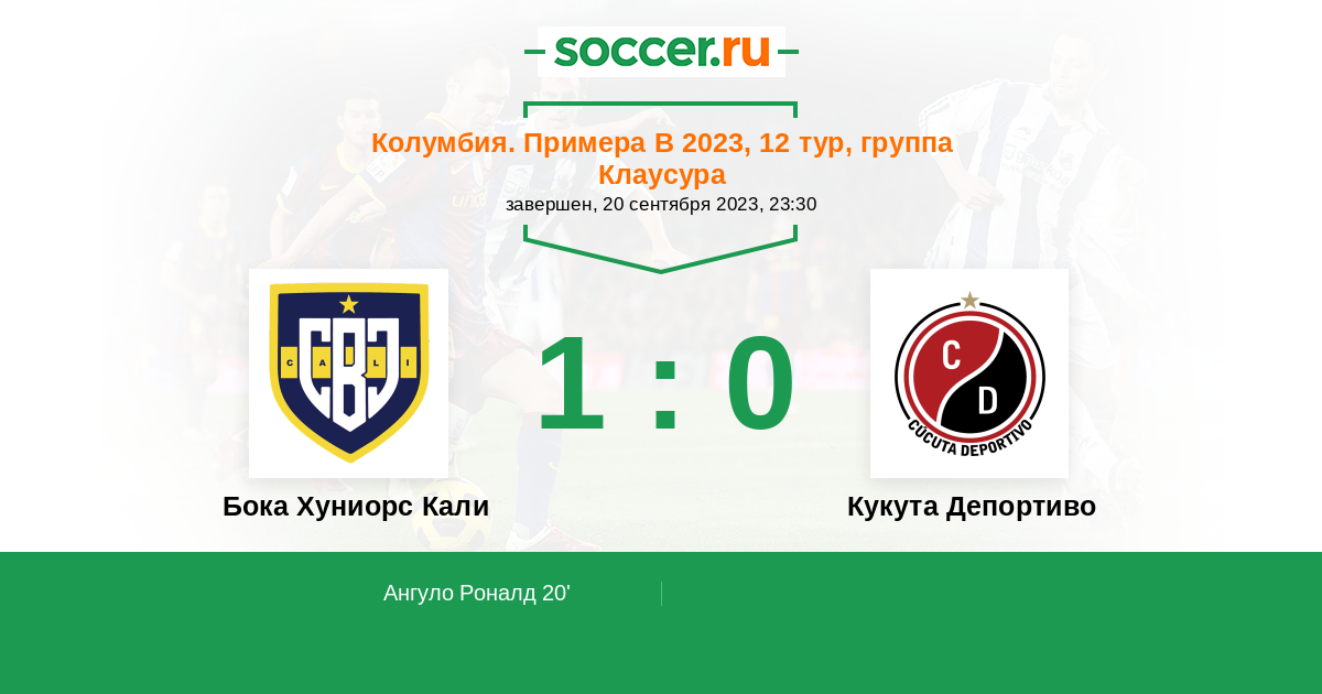 Колумбия. Примера B 17.04.2023 Кукута Депортиво Логотип футбольный клуб Кукута Депортиво 2:1 Логотип футбольный клуб Бока Хуниорс Кали (Сантьяго-де-Кали) Бока Хуниорс Кали