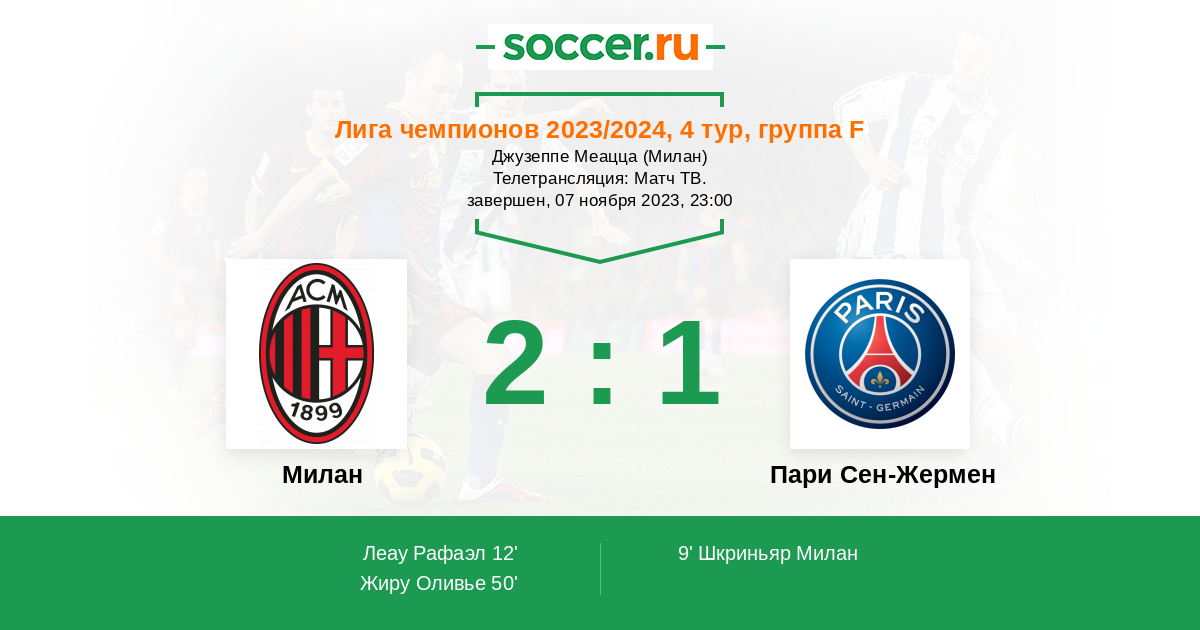 Матчи Лига чемпионов 2023/2024