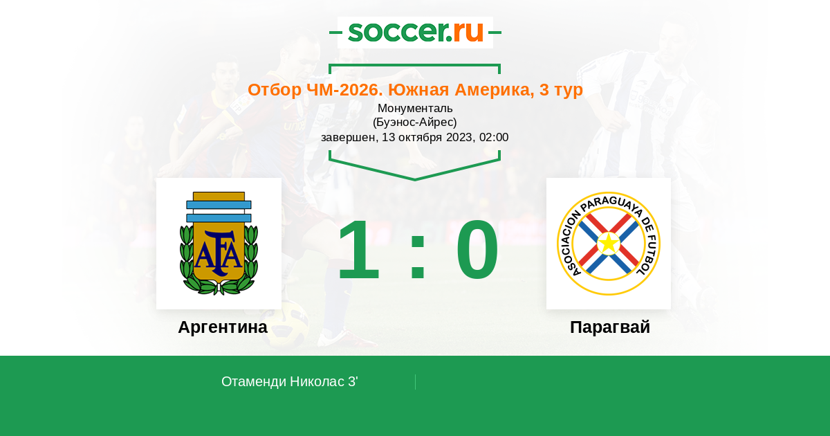 Отбор ЧМ. Южная Америка 11.09.2013 Парагвай Логотип Парагвай 2:5 Логотип Аргентина Аргентина