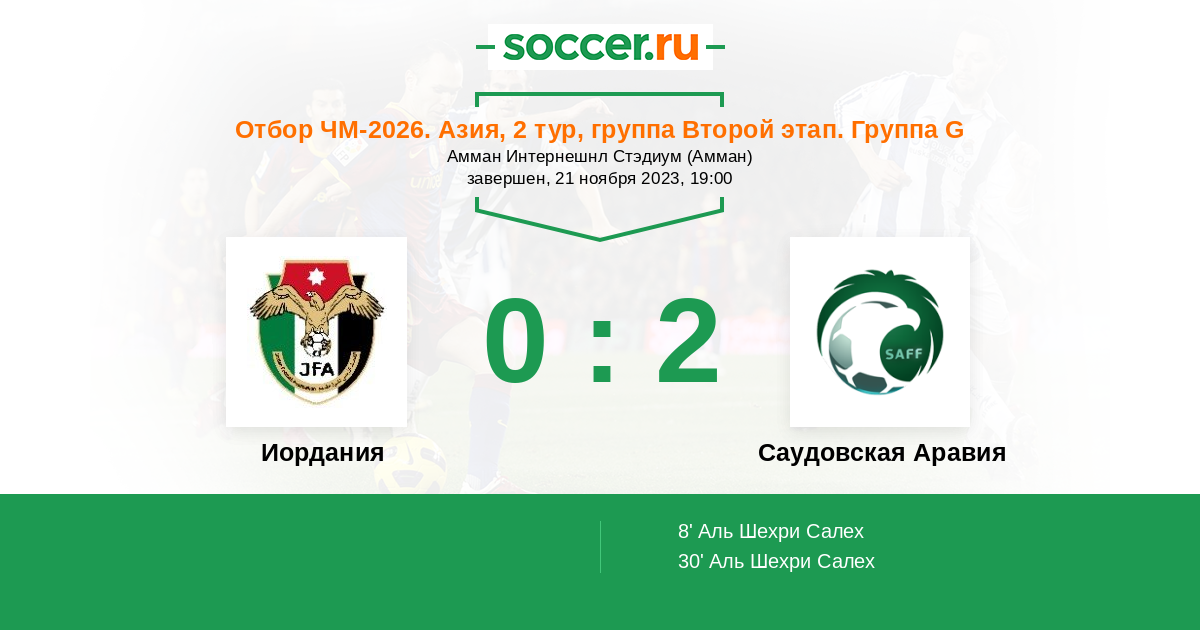 Не смотря на то что Иордания сегодня выступает в роли хозяйки, всё же рискну поставить в отборочном матче на победу гостей сборную Саудовской Аравии, потому как её рейтинг гораздо выше.