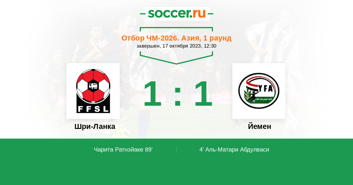 В отборочном матче первого раунда на ЧМ-2026 Азиатской конфедерации между сборными командами Шри-Ланки и Йемена поверю букам и рискну предположить победу гостей, потому как их рейтинг в классификации ФИФА выше.