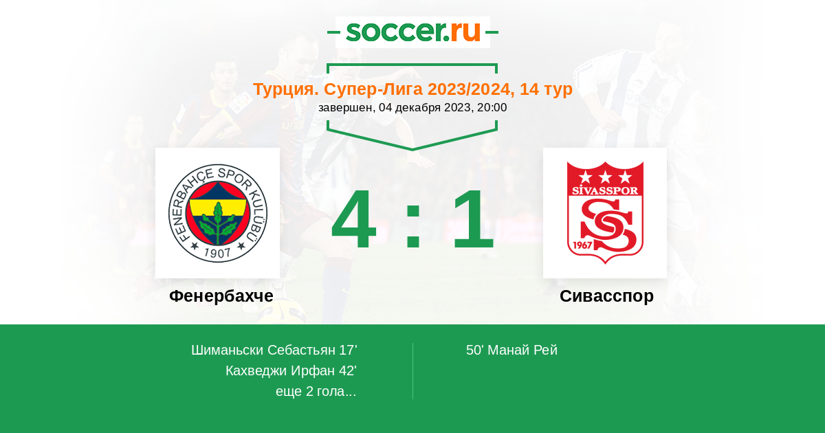 Турция. Суперлига 10.11.2024 Фенербахче Логотип футбольный клуб Фенербахче (Стамбул) 4:0 Логотип футбольный клуб Сивасспор Сивасспор