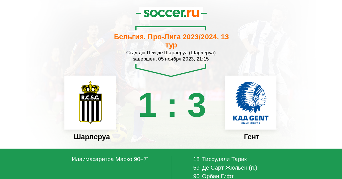 Бельгия. Про-Лига 09.11.2013 Шарлеруа Логотип футбольный клуб Шарлеруа 0:1 Логотип футбольный клуб Гент Гент