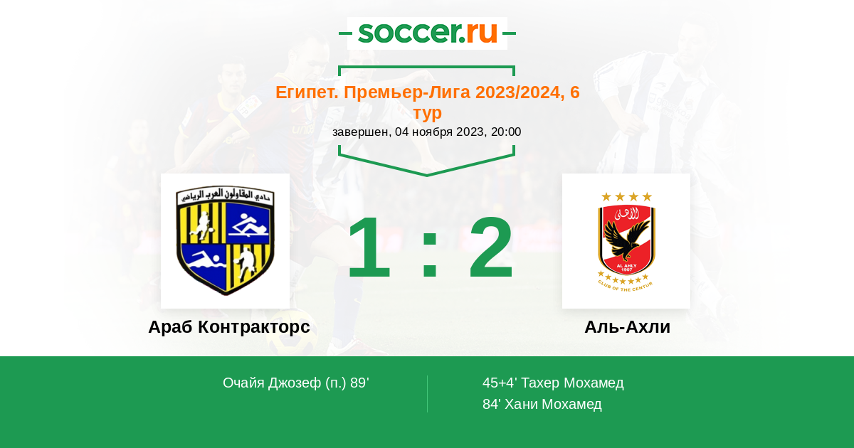 Египет. Премьер-Лига 07.03.2023 Аль-Ахли Логотип футбольный клуб Аль-Ахли (Каир) 2:1 Логотип футбольный клуб Араб Контракторс (Каир) Араб Контракторс