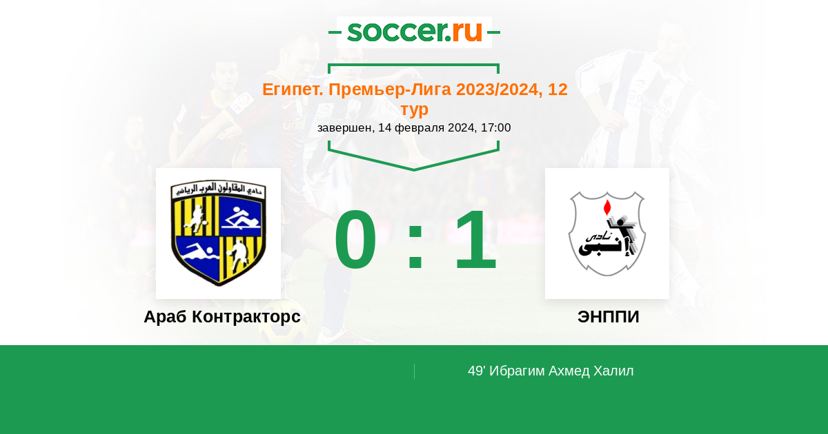 Египет. Премьер-Лига 15.12.2022 Араб Контракторс Логотип футбольный клуб Араб Контракторс (Каир) 3:2 Логотип футбольный клуб ЭНППИ (Каир) ЭНППИ
