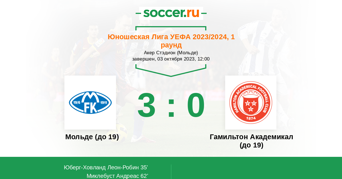 Мольде (до 19) Гамильтон Академикал (до 19)