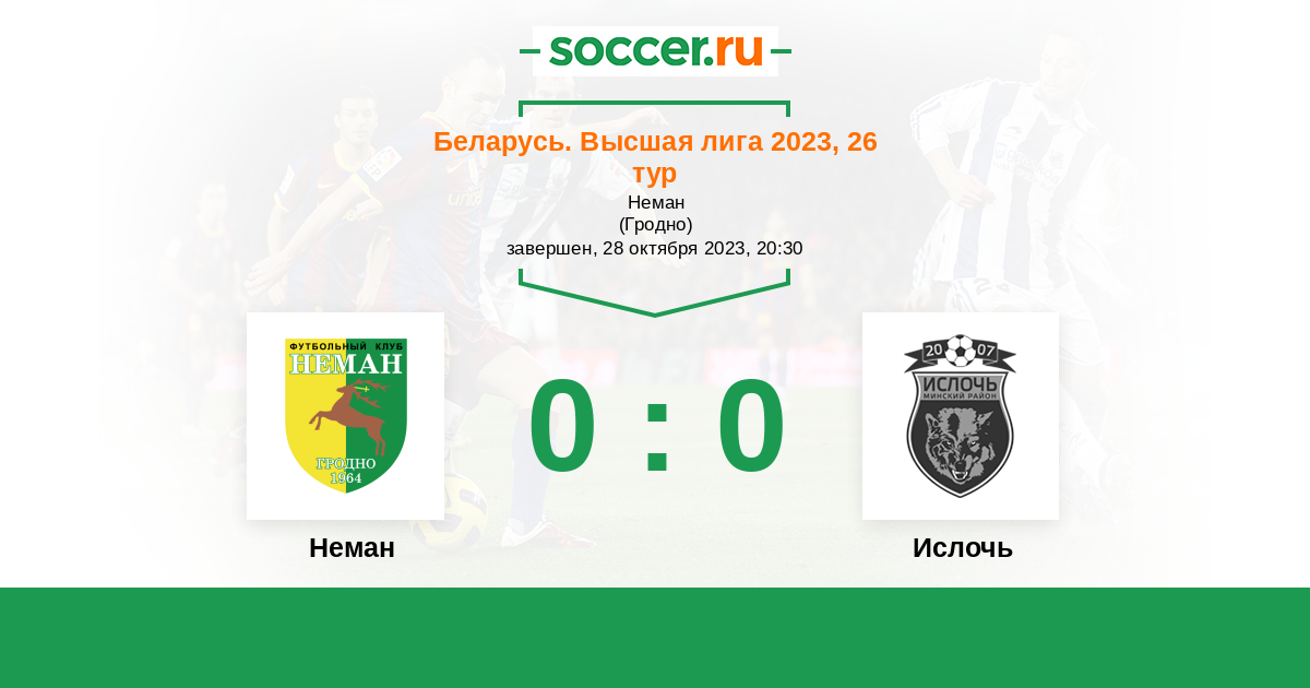 Беларусь. Высшая лига 04.07.2020 Неман Логотип футбольный клуб Неман (Гродно) 1:0 Логотип футбольный клуб Ислочь (Минск) Ислочь
