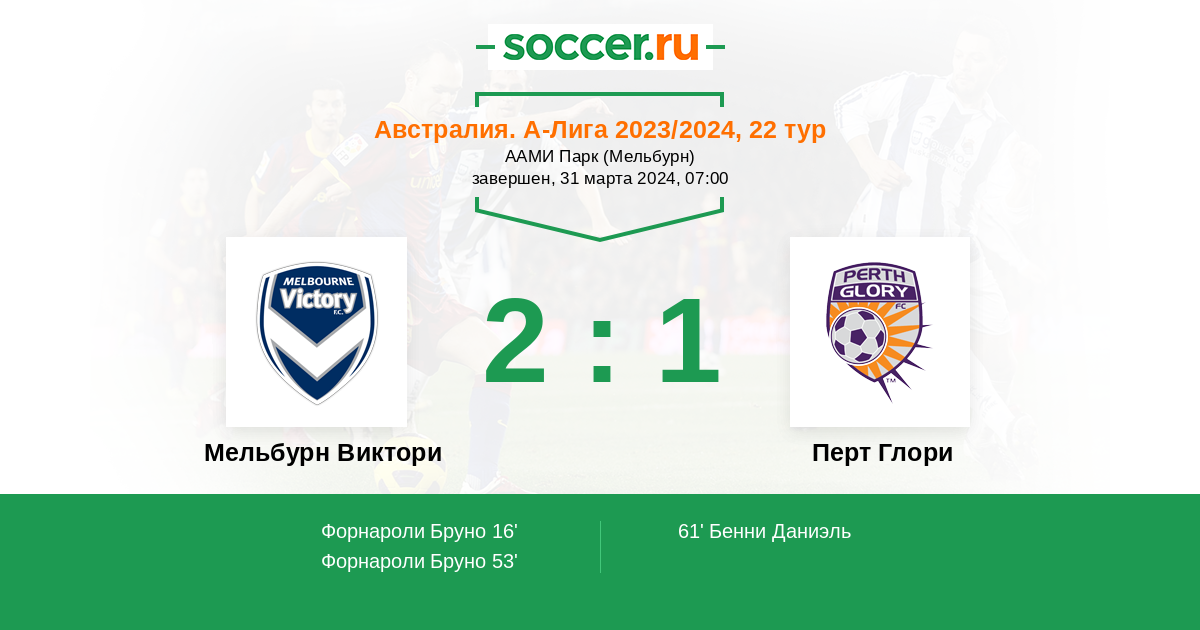 Австралия. А-Лига 31.10.2025 Перт Глори Логотип футбольный клуб Перт Глори 0:2 Логотип футбольный клуб Мельбурн Виктори Мельбурн Виктори