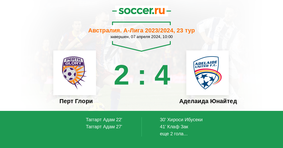 Австралия. А-Лига 12.04.2025 Перт Глори Логотип футбольный клуб Перт Глори 4:1 Логотип футбольный клуб Аделаида Юнайтед Аделаида Юнайтед