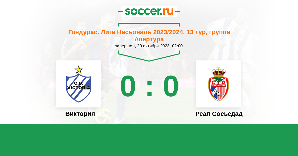 Гондурас. Лига Насьональ 02.05.2013 Виктория Логотип футбольный клуб Виктория (Ла-Сейба) 0:3 Логотип футбольный клуб Реал Сосьедад (Токоа) Реал Сосьедад