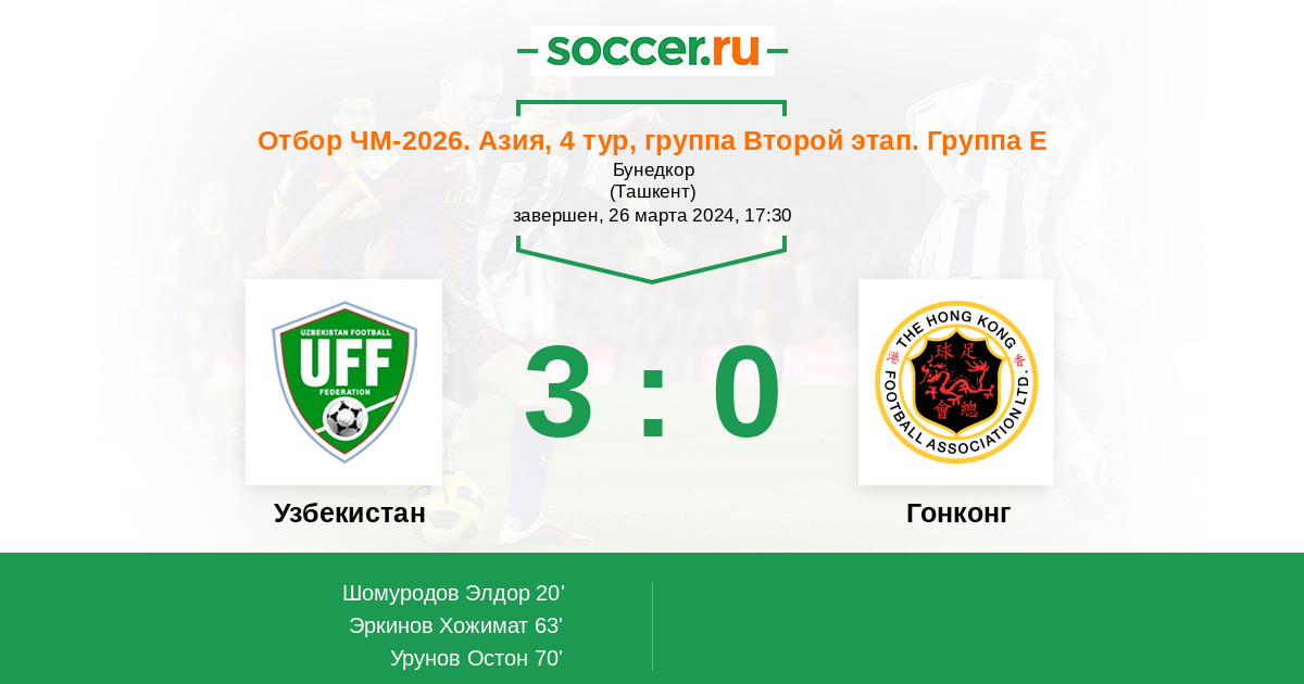 Узбекистан 2:0 0:0 2:0