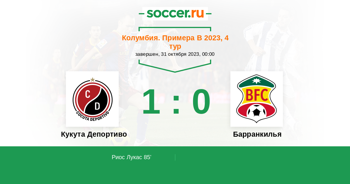 Колумбия. Примера B 28.10.2023 Барранкилья Логотип футбольный клуб Барранкилья 0:1 Логотип футбольный клуб Кукута Депортиво Кукута Депортиво