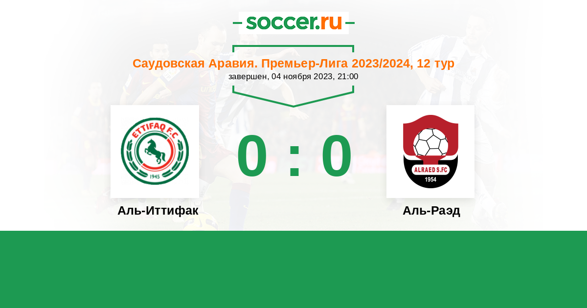 Саудовская Аравия. Премьер-Лига 12.09.2021 Аль-Иттифак Логотип футбольный клуб Аль-Иттифак (Даммам) 2:2 Логотип футбольный клуб Аль-Раэд (Бурайда) Аль-Раэд