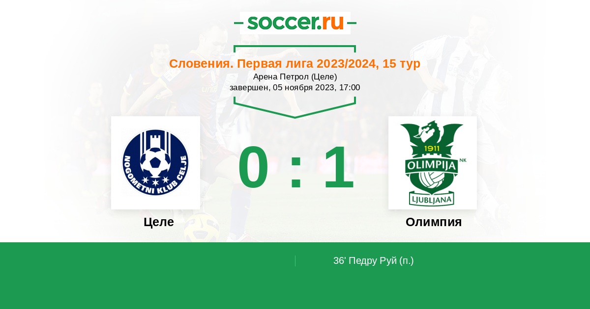 Словения. Первая Лига 02.11.2014 Олимпия Логотип футбольный клуб Олимпия (Любляна) 1:3 Логотип футбольный клуб Целе Целе