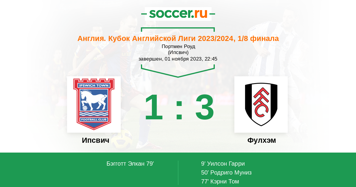 Англия. Кубок Лиги 16.09.2020 Ипсвич Логотип футбольный клуб Ипсвич 0:1 Логотип футбольный клуб Фулхэм (Лондон) Фулхэм