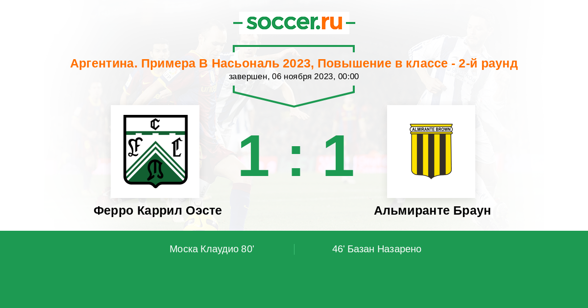 Ферро Каррил Оэсте 1:0 1:0 0:0