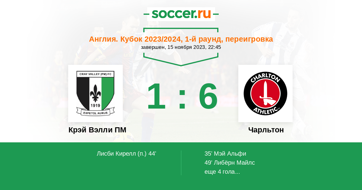 Крэй Вэлли ПМ 1:1 0:0 1:1