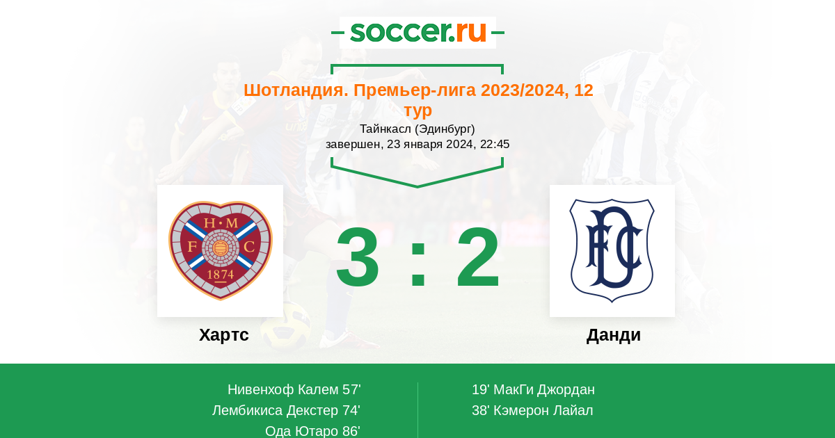 Шотландия. Премьер-Лига 07.12.2024 Хартс Логотип футбольный клуб Хартс (Эдинбург) 2:0 Логотип футбольный клуб Данди Данди