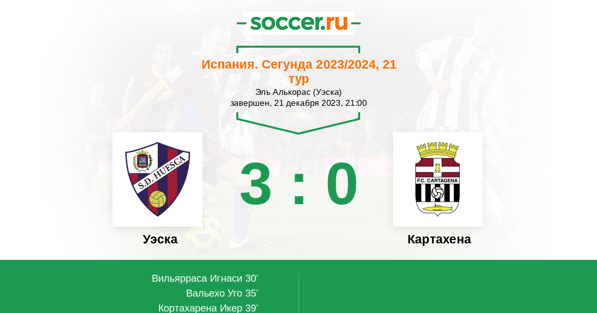 В сегодняшнем матче испанской Сегунды между командами Уэска и Картахена смею предположить победу хозяев, потому как на их стороне преимущество своего поля и плюс они располагаются выше в турнирной таблице.