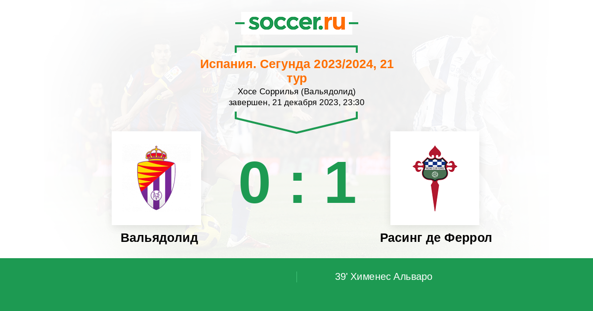 В предстоящем матче 21 - го тура испанской Сегунды между командами Реал Вальядолид и Расинг Де Феррол, фаворитом на победу является команда хозяев Реал Вальядолид, так как они играют дома.