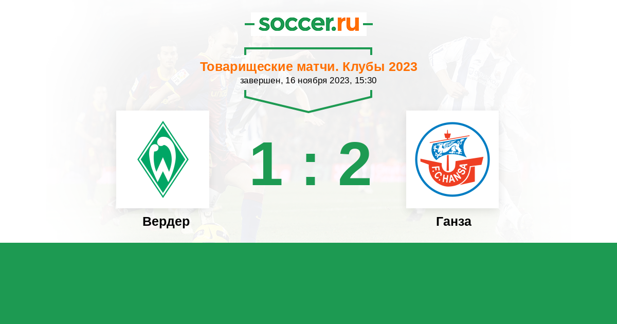 Германия. Бундеслига 2 29.08.2021 Вердер Логотип футбольный клуб Вердер (Бремен) 3:0 Логотип футбольный клуб Ганза (Росток) Ганза