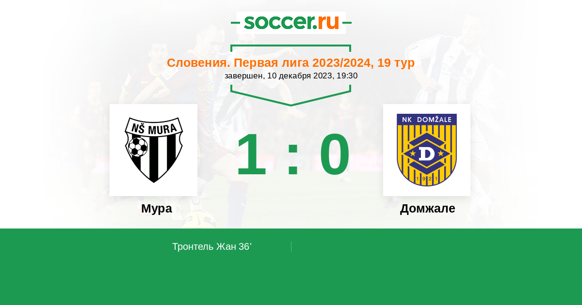 Словения. Первая Лига 12.12.2022 Мура Логотип футбольный клуб Мура (Мурска Собота) 0:1 Логотип футбольный клуб Домжале Домжале