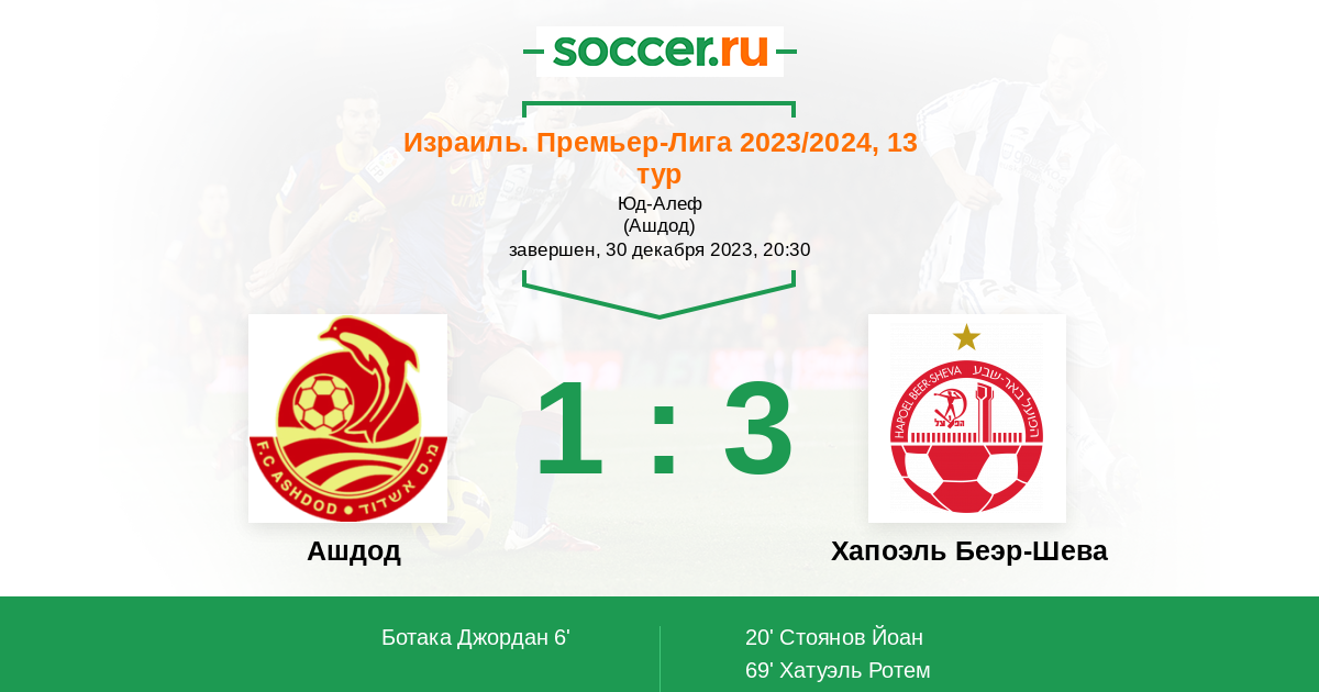 Израиль. Премьер-Лига 29.10.2017 Ашдод Логотип футбольный клуб Ашдод 1:3 Логотип футбольный клуб Хапоэль Беэр-Шева Хапоэль Беэр-Шева