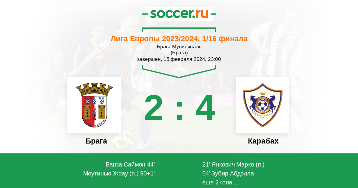 “Карабах“, конечно, в отличной форме. Однако не будем забывать о разнице в классе, а она в данном случае на стороне португальцев. Как и фактор поля. Поэтому “Брага“ по праву считается фаворитом поединка и должна добиваться успеха. За последние десять матчей на своем поле “Брага“ проиграла лишь раз. Против “Карабаха“ она будет играть не просто на победу, а стремиться добиться максимальной разницы перед выездом на ответный поединок.