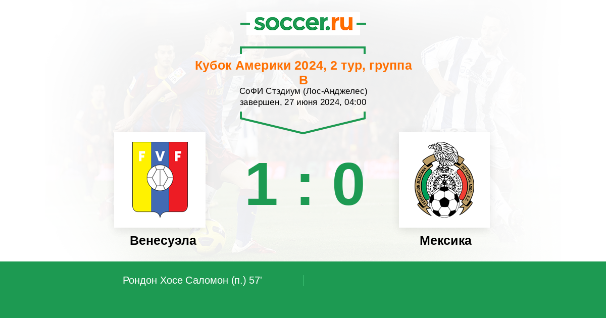 Главный тренер сб.Мексики Хайме Лосано устроил в команде перестройк, не вызвал на Копу лидеров прошлых лет - Гильермо Очоа и Ирвинга Лосано, доверяет больше молодежи...иМексика обладает отличным подбором исполнителей... Качественная игра в обороне и высокий класс атакующей группы например центральный нападающий Сантьяго Хименес - один из лучших в голландской Эредивизии с 23 голами за сезон...Победа зеленых.
