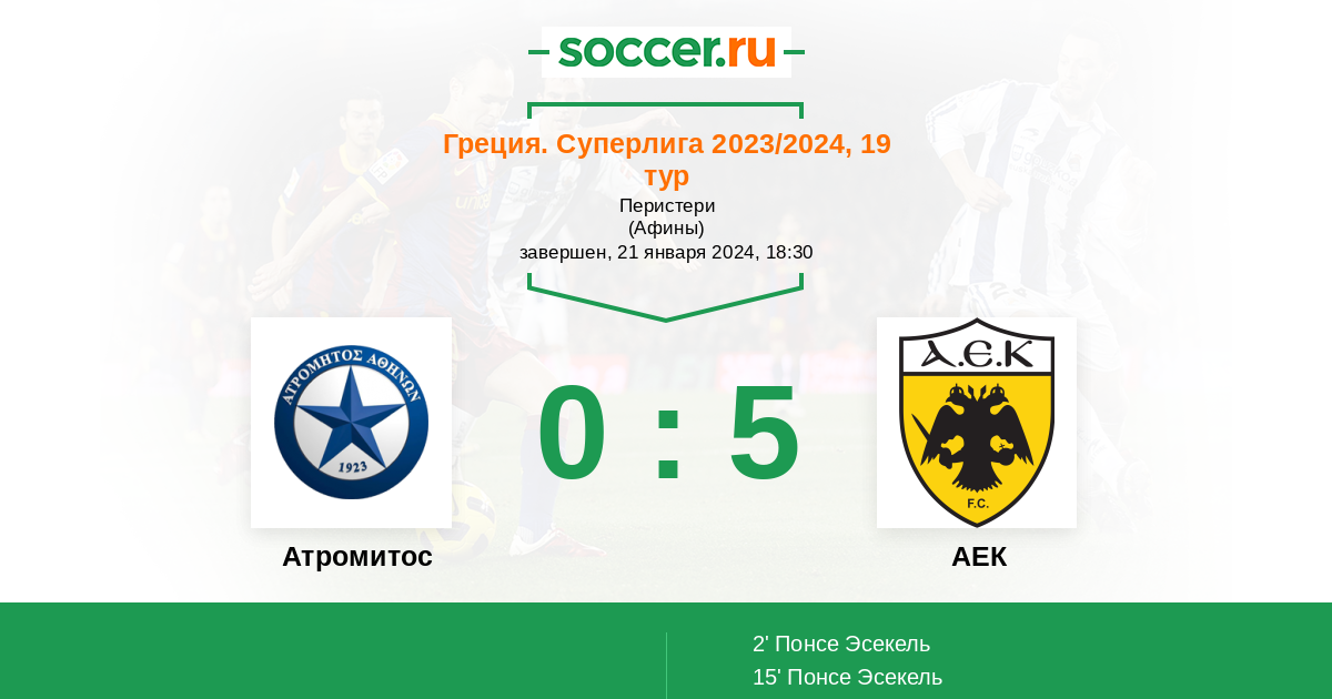 Греция. Суперлига 17.10.2021 АЕК Логотип футбольный клуб АЕК (Афины) 3:0 Логотип футбольный клуб Атромитос (Перистери) Атромитос