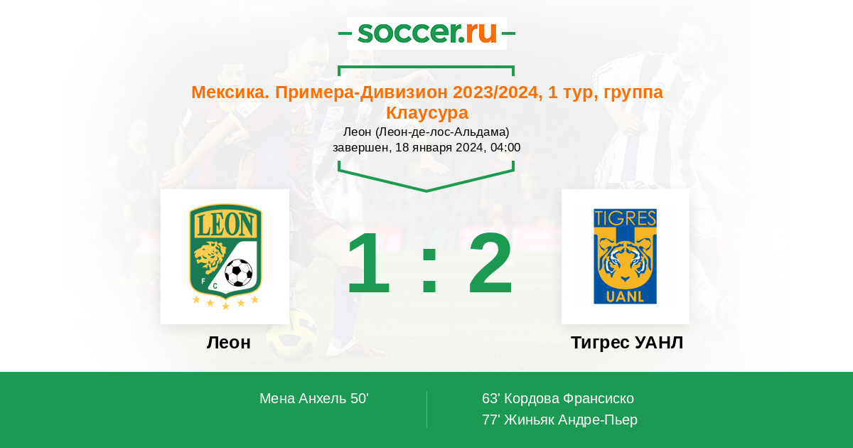Мексика. Примера-Дивизион 16.07.2023 Тигрес УАНЛ Логотип футбольный клуб Тигрес УАНЛ (Монтеррей) 1:0 Логотип футбольный клуб Леон Леон