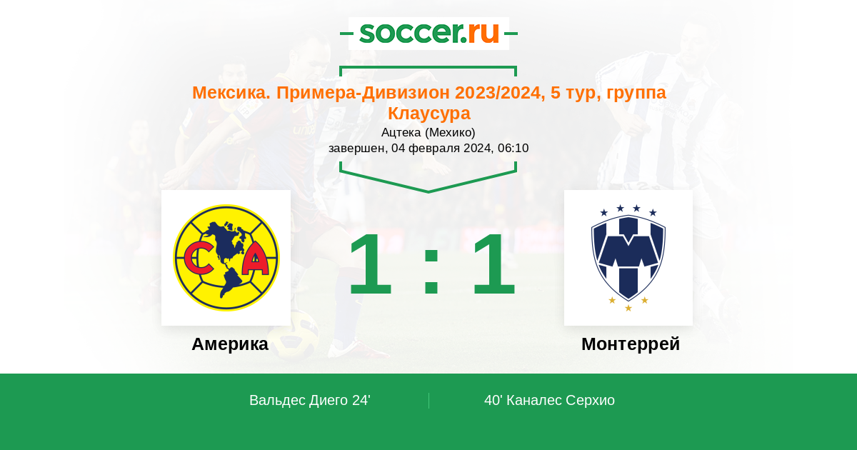 Мексика. Примера-Дивизион 09.04.2023 Америка Логотип футбольный клуб Америка (Мехико) 2:1 Логотип футбольный клуб Монтеррей Монтеррей