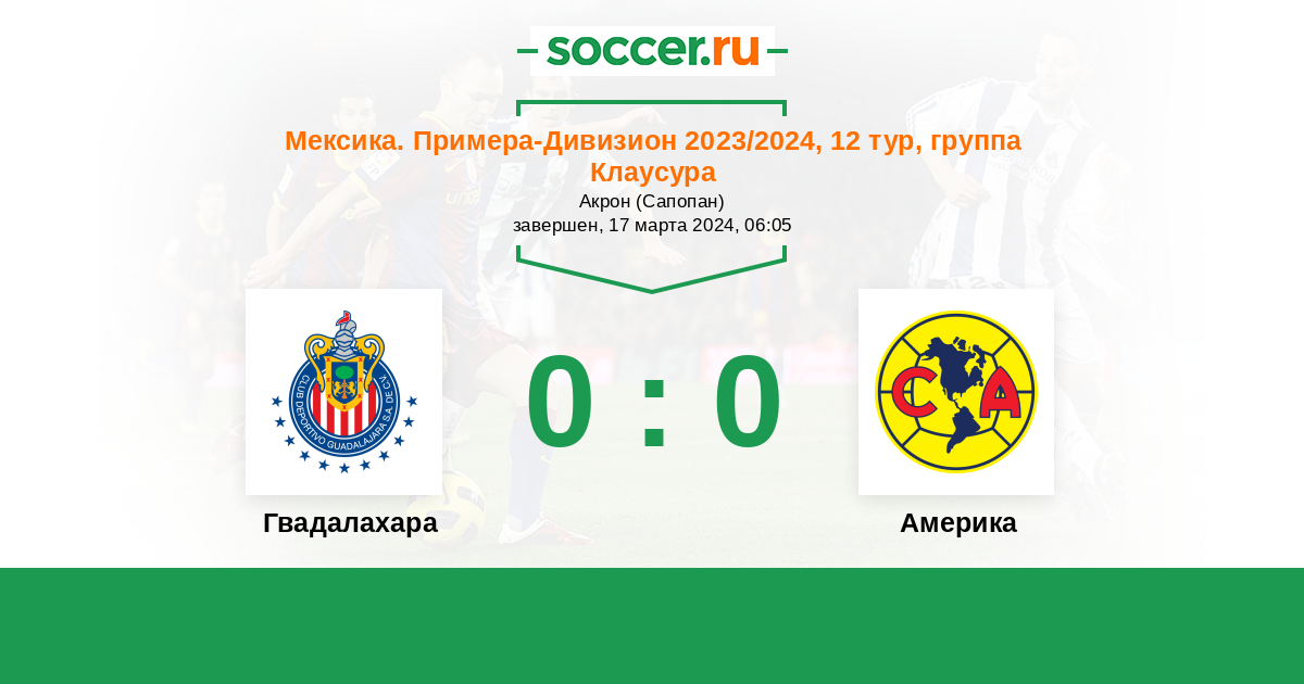 Мексика. Примера-Дивизион 19.03.2023 Гвадалахара Логотип футбольный клуб Гвадалахара 2:4 Логотип футбольный клуб Америка (Мехико) Америка