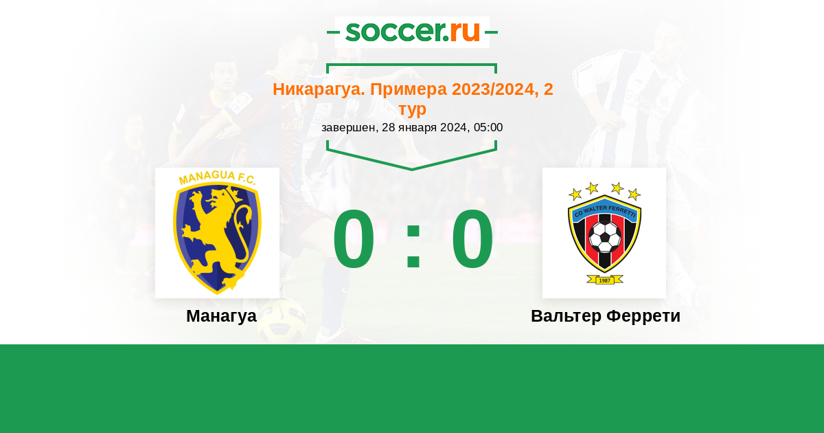 Никарагуа. Примера 26.03.2023 Манагуа Логотип футбольный клуб Манагуа 2:2 Логотип футбольный клуб Вальтер Феррети (Манагуа) Вальтер Феррети