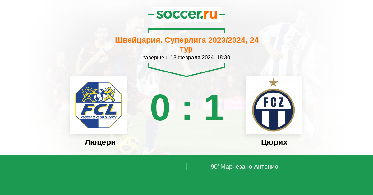 Швейцария. Суперлига 18.02.2018 Цюрих Логотип футбольный клуб Цюрих 1:1 Логотип футбольный клуб Люцерн Люцерн