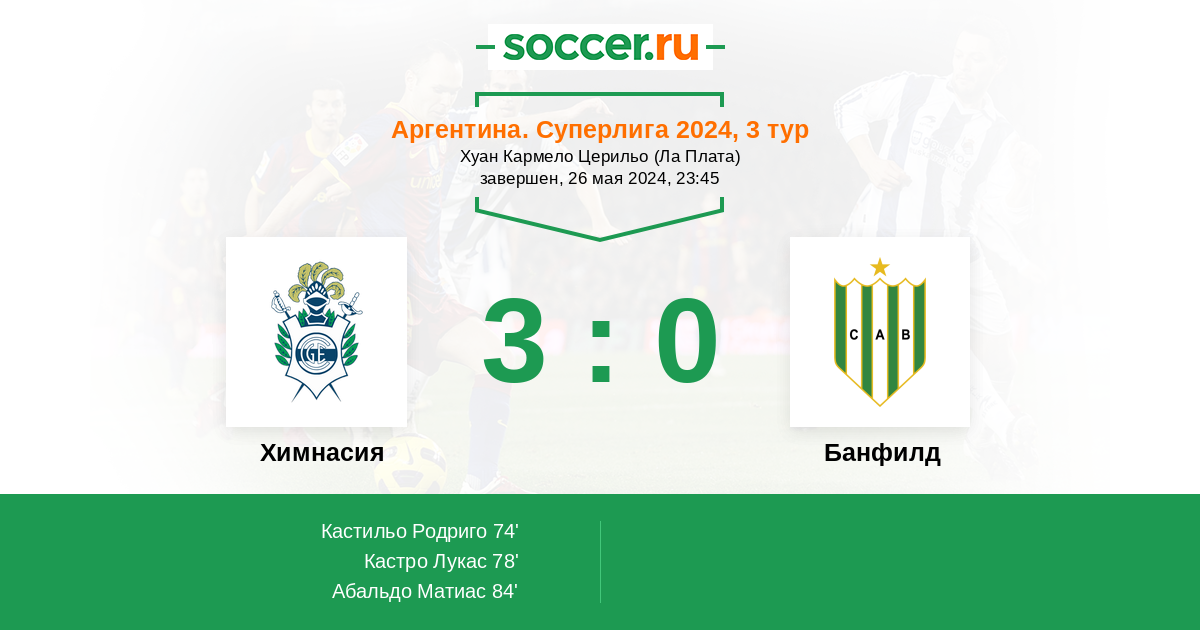 Аргентина. Суперлига 26.11.2023 Банфилд Логотип футбольный клуб Банфилд 2:0 Логотип футбольный клуб Химнасия (Ла-Плата) Химнасия