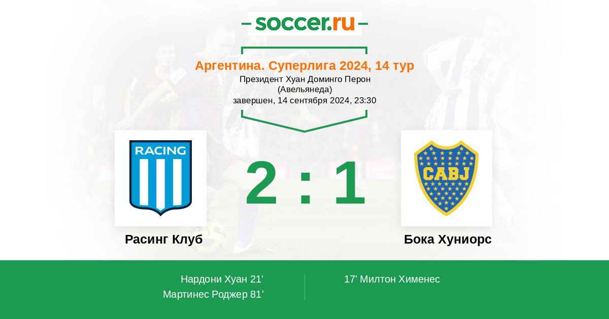 Аргентина. Суперлига 10.06.2013 Расинг Клуб Логотип футбольный клуб Расинг Клуб (Авельянеда) 2:0 Логотип футбольный клуб Бока Хуниорс (Буэнос-Айрес) Бока Хуниорс