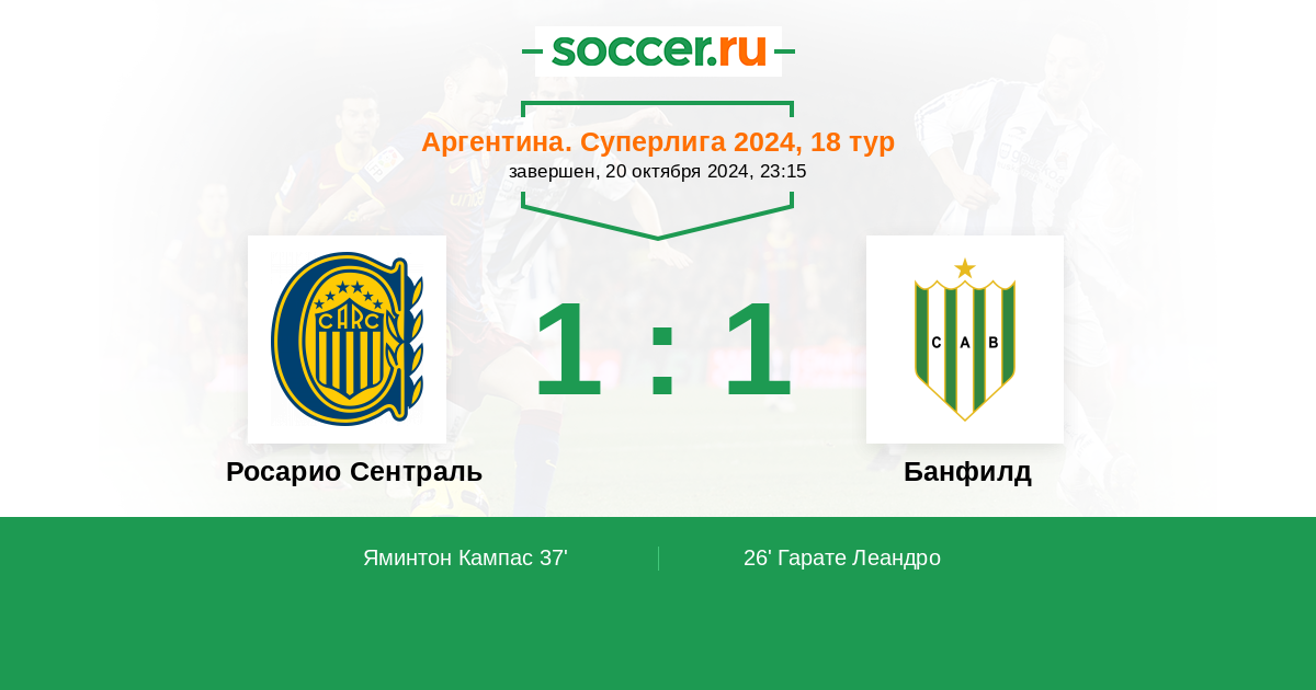 Аргентина. Суперлига 16.09.2021 Банфилд Логотип футбольный клуб Банфилд 1:2 Логотип футбольный клуб Росарио Сентраль Росарио Сентраль
