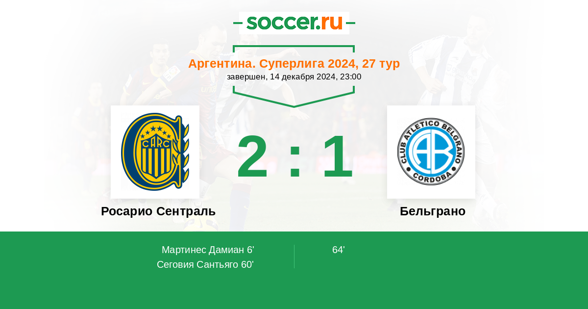 Аргентина. Суперлига 24.10.2014 Бельграно Логотип футбольный клуб Бельграно (Кордоба) 1:0 Логотип футбольный клуб Росарио Сентраль Росарио Сентраль