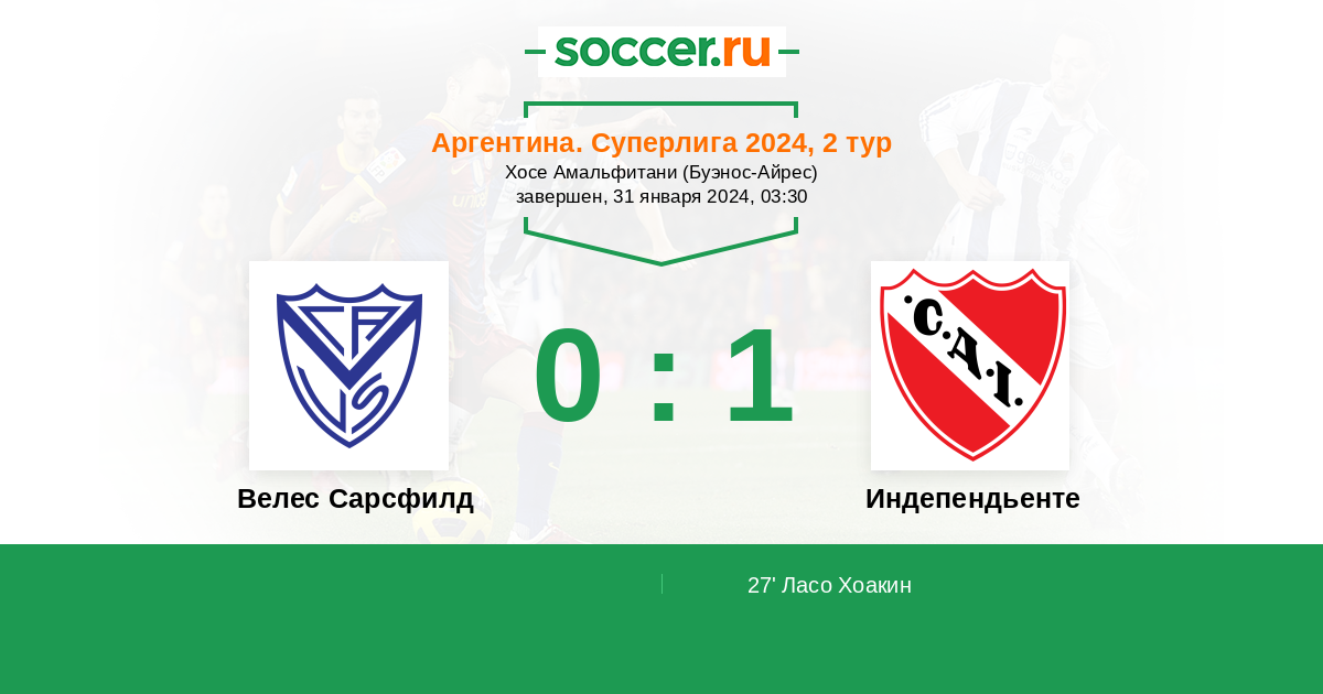 Аргентина. Суперлига 01.02.2026 Индепендьенте Логотип футбольный клуб Индепендьенте (Авельянеда) 1:1 Логотип футбольный клуб Велес Сарсфилд (Буэнос-Айрес) Велес Сарсфилд