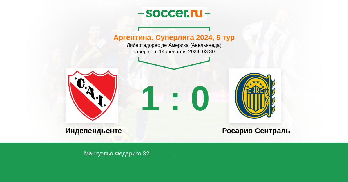 Аргентина. Суперлига 17.08.2024 Индепендьенте Логотип футбольный клуб Индепендьенте (Авельянеда) 1:0 Логотип футбольный клуб Росарио Сентраль Росарио Сентраль