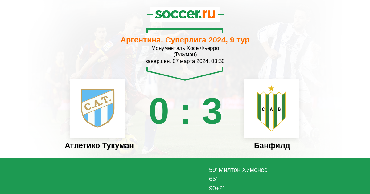 Аргентина. Суперлига 26.09.2021 Банфилд Логотип футбольный клуб Банфилд 2:0 Логотип футбольный клуб Атлетико Тукуман (Сан-Мигель-де-Тукуман) Атлетико Тукуман