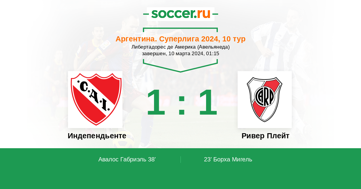 Аргентина. Суперлига 24.04.2023 Ривер Плейт Логотип футбольный клуб Ривер Плейт (Буэнос-Айрес) 2:0 Логотип футбольный клуб Индепендьенте (Авельянеда) Индепендьенте
