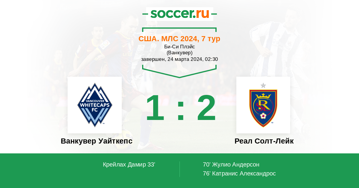 США. МЛС 12.08.2012 Ванкувер Уайткепс Логотип футбольный клуб Ванкувер Уайткепс 2:1 Логотип футбольный клуб Реал Солт-Лейк (Солт-Лейк-Сити) Реал Солт-Лейк